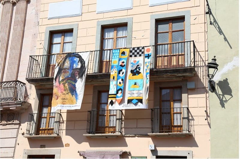 🔊 Escuchar esto Hoy Guanajuato capital luce con más colores y notables creaciones artísticas. Y es que en la Plaza de la Paz se lleva a cabo la exhibición “Balconadas de Guanajuato”, en la que se puede apreciar una veintena de obras desplegadas desde los balcones de tan emblemático sitio. El objetivo de esta exhibición es incluir los espacios públicos de la ciudad capital en la oferta artística del Festival Internacional Cervantino. La muestra se inspira en la tradición española de colocar colchas (generalmente adamascadas o de ganchillo) al paso de las procesiones religiosas. Basada en una versión contemporánea –el evento Art al Vent, que se celebra en Gata de Gorgos, un municipio de la comunidad de Valencia, España-, la artista Jeanette Betancourt configuró la propuesta que se disfruta estos días. EXPONEN GUANAJUATENSES En su primera edición, la muestra se conforma con 20 artistas nacidos y/o residentes del estado de Guanajuato convocados por invitación, quienes realizaron sus creaciones artísticas sobre mantas de lona de tamaño 163 x 260. LOS ARTISTAS PARTICIPANTES SON: Andrés Aranda, Humberto Barajas, Antar Trejo Boles, Goretti Padilla, Ariadna Rapozo, Enrique López Llamas, Fátima Edith Domínguez Ramírez, Laura Catalina Salcedo Ortiz, Isaura Izquierdo, Rayito Flores, Jorge A. Ortega, Israel López, María Eugenia Yllades Nieto, Juan Andrés Zermeño, Manuel Lozano, Christian Santana Printz, Pablo Durán, Raúl Cárdenas Rosas, Vanessa Salas Orduño y Vanessa Freitag. VOTA POR ELLOS La exposición-concurso, promovida por el Instituto Estatal de la Cultura, invita a votar mediante código QR para elegir a las tres obras ganadoras a partir del miércoles con el comienzo de la edición 48 del Festival Internacional Cervantino, que este año se lleva a cabo en formato digital por la contingencia sanitaria. La muestra de 20 mantas estará distribuida en los balcones del Museo Casa Conde Rul y de las casas vecinas de la Plaza de la Paz, hasta el 8 de noviembre. MÁS EXPOSICIONES Además, como parte del Cervantino se suman otras 11 exposiciones en los recintos bajo el resguardo del Instituto Estatal de la Cultura en: Casa Diego Rivera: “El hombre eterno migrante”, de Dana Aerelund y la exposición homenaje al artista zacatecano, Manuel Felguérez. En el Museo del Pueblo: “Maíz nuestro de cada día. Un diálogo entre el ayer y el hoy en torno al maíz” de Elizabeth Toss, la colectiva de la “IV Bienal Takeda” y la muestra “Latinoamérica a través de cine. Cartel Cubano”. En el Museo Conde Rul: “La construcción del instante” de Flor Garduño y “Constelaciones” de Ana Quiroz”. En Palacio de los Poderes: “Signos vitales: aflicciones de la remembranza” de Oweena Camille Fogarty En el de Arte Olga Costa y José Chávez Morado: “Particiones” de Ana Quiroz En el Hermenegildo Bustos (Purísima del Rincón): “Punto de partida. Acercamiento al trabajo fotográfico de Manuel” Y en el José y Tomás Chávez Morado (Silao): “Tzompantli de Arte Popular; Imaginación y Diseño”, de la Galería Arte Yawi. Para el acceso a las exposiciones en semáforo amarillo, el protocolo general incluye: Uso obligatorio de cubrebocas para personal y visitantes Guardar sana distancia Ingreso por filtro sanitario para desinfección de manos y calzado Toma de temperatura Aforo controlado e ingreso escalonado. El ingreso será escalonado, con un cupo máximo de cinco personas por sala. Estarán deshabilitadas las áreas lúdicas y los servicios educativos presenciales y el horario de funcionamiento será de martes a sábado de 10:00 a 18:30 horas y domingo de 10:00 a 14:30 horas. Compartir
