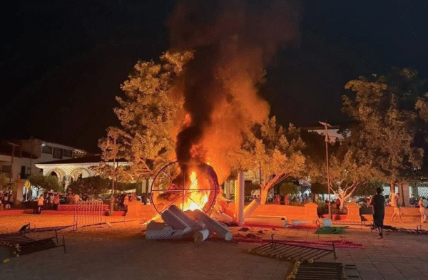 Michoacán arde y su pacificación luce muy lejana. La noche del lunes fue quemada la sede del ayuntamiento de Apatzingán, donde hace más de una semana fue acribillado el líder de productores de limón, Bernardo Bravo. Por lo pronto, durante la mañanera de este martes, la presidenta Claudia Sheinbaum anunció el “Plan Michoacán” que busca pacificar al estado con “justicia, desarrollo económico y educación”. En las últimas horas se han llevado a cabo marchas de protesta en Uruapan, donde fue asesinado su alcalde Carlos Manzo, Morelia, Zitácuaro y la noche del lunes en Apatzingán. Ahí, una turba vandalizó y quemó el palacio de gobierno municipal encabezado por la morenista Fanny Arreola y donde hace una semana fue ejecutado el líder limonero Bernardo Bravo. NO CALLARÁN SU MENSAJE “Silenciaron su voz, pero no su mensaje”, “Nos dueles Michoacán”, “Podrán matar al mensajero, pero no el mensaje”. “Hoy su pueblo grita por ellos”, decían algunos cartelones en la marcha que incluían fotos o ilustraciones del alcalde Manzo y el dirigente limonero. Frente al Palacio Municipal, manifestantes rompieron puertas, vidrios y entraron al edificio donde provocaron un incendio en la planta baja del inmueble. También colgaron una manta en el balcón principal para exigir la renuncia de la alcaldesa. Los manifestantes prendieron fuego a distintas ofrendas y adornos del Día de Muertos colocados en la plaza principal. NARCOCORRIDO A LA ALCALDESA MORENISTA La alcaldesa de Apatzingán volvió a ser centro de la polémica, pues ayer pidió en un video que las protestas se hicieran “con mesura”. Fanny Arreola fue blanco de críticas, pues la semana pasada, durante la Expo Feria 2025 de Apatzingán, fue homenajeada con un narcocorrido. “Los Originales de San Juan” le cantaron la canción “La Raza Michoacana” que exalta a los grupos criminales de Tierra Caliente, Michoacán. Y esto sin importarle la ejecución del líder limonero Bernardo Bravo ocurrida unas horas antes. PLAN DE RESCATE En su mañanera, la presidenta Sheinbaum anunció el “Plan Michoacán por la Paz y la Justicia”. Dijo que será construido para mejorar la seguridad, la justicia, el desarrollo económico, y la educación en la entidad. El plan contiene tres ejes: seguridad y justicia, desarrollo económico con justicia, educación, y cultura para la paz. En términos de seguridad y justicia: fortalecimiento de la presencia de fuerzas federales en Michoacán, no solamente con la Guardia Nacional, sino en unidades conjuntas, Guardia Nacional, Secretaría de Seguridad y Protección Ciudadana, Seguridad Estatal, Fiscalía estatal, enfocada principalmente en homicidios y extorsión. (Fotos: Tomadas de Reforma) Compartir Navegación de entradas Alarmante participación de adolescentes en venta de drogas Insultan a mexicana en concurso Miss Universo