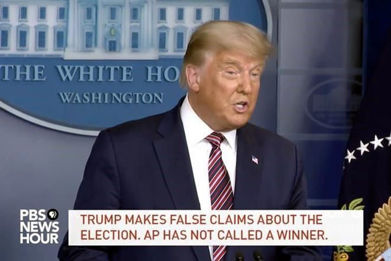 “Vamos a dejar la conferencia del presidente Donald Trump, y la razón es muy sencilla, esto es muy importante, parte de las cosas que ha dicho el presidente Donald Trump son mentiras. No es cierto lo que ha dicho el presidente Trump respecto a que votos legales están evitando su victoria, no ha presentado ningún tipo de evidencia de que eso está ocurriendo…. Gracias, continuamos”.