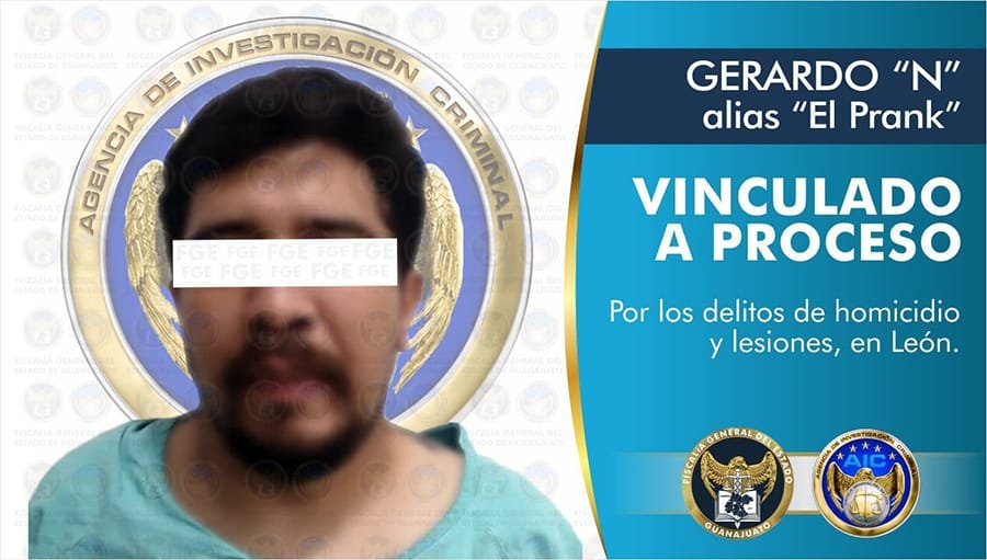 🔊 Escuchar esto Un peligroso multihomicida que operaba impunemente en León ha sido vinculado a proceso. De acuerdo con un comunicado de la Fiscalía General del Estado de Guanajuato (FGE), Gerardo “N”, “El Prank”, fue detenido y enviado a prisión por un juez acusado de ejecutar presuntamente 11 homicidios y causar lesiones a 5 en León. Este sujeto fue detenido durante un operativo emprendido por Agentes de Investigación Criminal de la FGE, luego de que el juez giró orden de aprehensión. En un recuento de los hechos, la FGE indicó que el primero de los homicidios ocurrió la tarde del 16 de septiembre del 2020 cuando el imputado acudió a un predio de la calle San Pedrito de la colonia El Coecillo, donde abrió fuego con una pistola contra cuatro personas causando la muerte de tres y dejando gravemente herida a otra. Posteriormente, el 20 de octubre del año pasado, “El Prank” llegó a bordo de una motocicleta con su cómplice “El Yoric” con quien acribilló a dos personas que atendían un puesto ambulante de bebidas en las inmediaciones de las calles Taxco y Salina Cruz de la colonia Josefina. “El Yoric” ya se encuentra vinculado a proceso por estas ejecuciones. Después, la tarde-noche del 24 de diciembre pasado, tuvo una discusión con una persona a quien asesinó con arma de fuego en la calle Palo Verde de la colonia El Coecillo. MASACRE EN EL COECILLO El 23 de enero pasado, entre las 18:30 y 19 horas, “El Prank”, acompañado de dos cómplices -José y Josué, que ya están en prisión- irrumpieron a un predio de la calle Chayote de la colonia El Coecillo, donde abrieron fuego contra las personas que estaban ahí, dando muerte a cinco causando lesiones a cuatro más. El presunto multihomicida fue aprehendido por elementos de la Unidad Especializada en Investigación de Homicidios tras recabar pruebas y análisis en laboratorios. “El Prank” fue presentado ante un juez, quien una vez que acreditó las pruebas presentadas por la FGE, ordenó su vinculación a proceso por los delitos de homicidio y lesiones. Compartir
