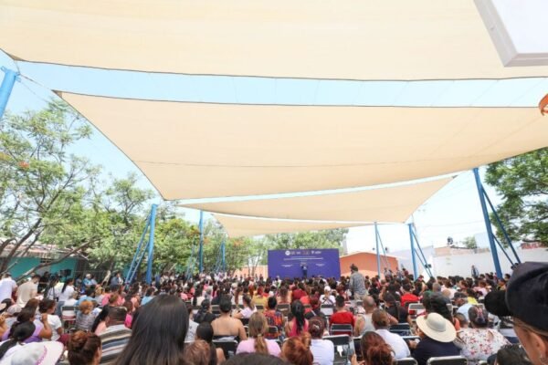 “Hoy estamos aquí para entregar esta velaria que estoy seguro es de mucha utilidad para protegerlos de las inclemencias del tiempo”, dijo el mandatario estatal.