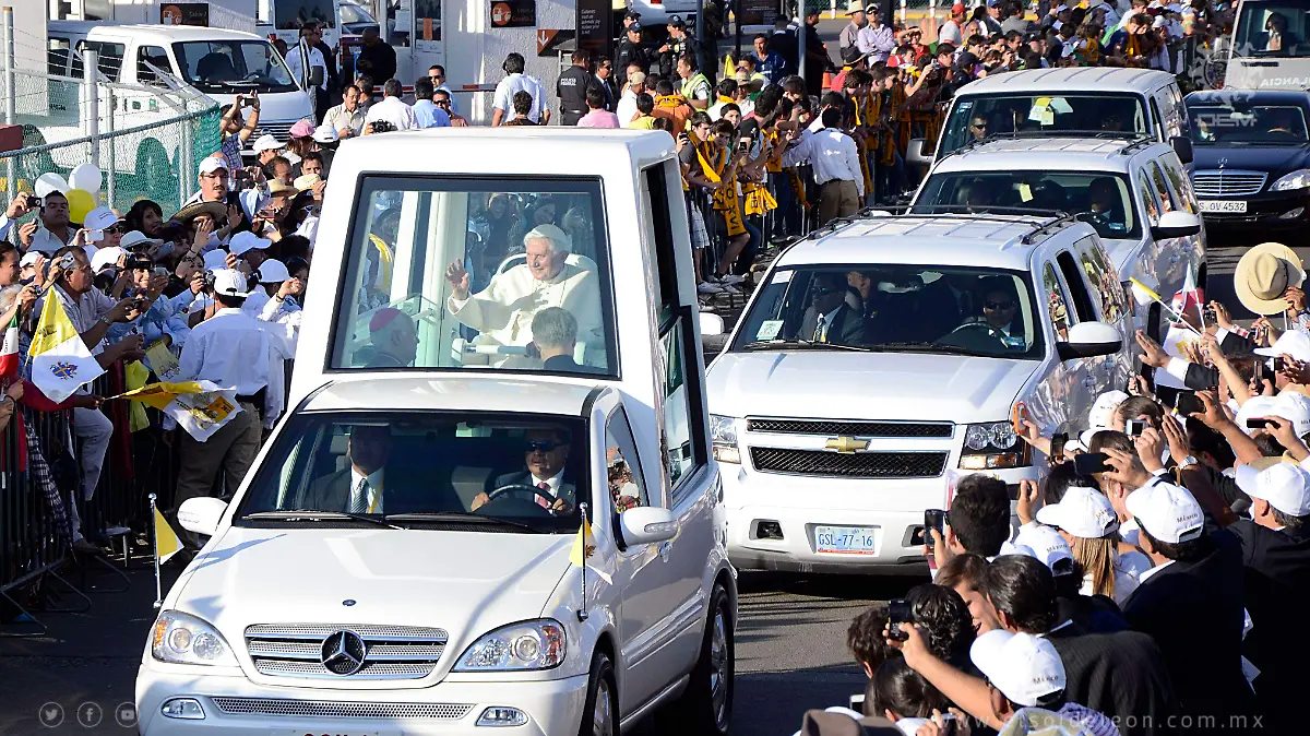 La visita del Papa Benedicto XVI a León continúa siendo uno de los acontecimientos más significativos en la historia reciente de la ciudad. A 14 años de aquel encuentro, la presencia del pontífice dejó una huella profunda en miles de personas que se congregaron para formar parte de un momento único. Durante la visita del Papa Benedicto, la ciudad se convirtió en el centro de atención nacional e internacional, al recibir a uno de los líderes religiosos más importantes del mundo. La organización del evento reflejó la capacidad de León para albergar encuentros de gran magnitud. Además, la visita del Papa Benedicto XVI a León representó un espacio de reflexión, unidad y encuentro para la comunidad, fortaleciendo el sentido de identidad y pertenencia entre los asistentes. Un legado de fe, encuentro y memoria colectiva El impacto de la visita del Papa Benedicto XVI a León se mantiene presente en la memoria colectiva de la ciudad. Para muchas personas, aquel momento simbolizó un punto de unión y un recuerdo que permanece vigente con el paso del tiempo. La visita del Papa Benedicto XVI a León también dejó un legado en términos de organización y proyección de la ciudad a nivel internacional. La experiencia adquirida permitió fortalecer la capacidad de León para recibir eventos de gran relevancia. Asimismo, la visita sigue siendo un referente histórico que se recuerda con emoción y orgullo. Las imágenes, testimonios y vivencias de ese día forman parte del patrimonio intangible de la ciudad. Con el paso de los años, la visita del Papa Benedicto XVI a León reafirma su importancia como un evento que trascendió lo religioso para convertirse en un símbolo de encuentro y unidad para León y México. Compartir Navegación de entradas ¡Guanajuato está imparable! Proyectan derrama de 3 mil MDP para estas vacaciones Alerta sanitaria: Ganaderos exigen frenar al gusano barrenador en Guanajuato
